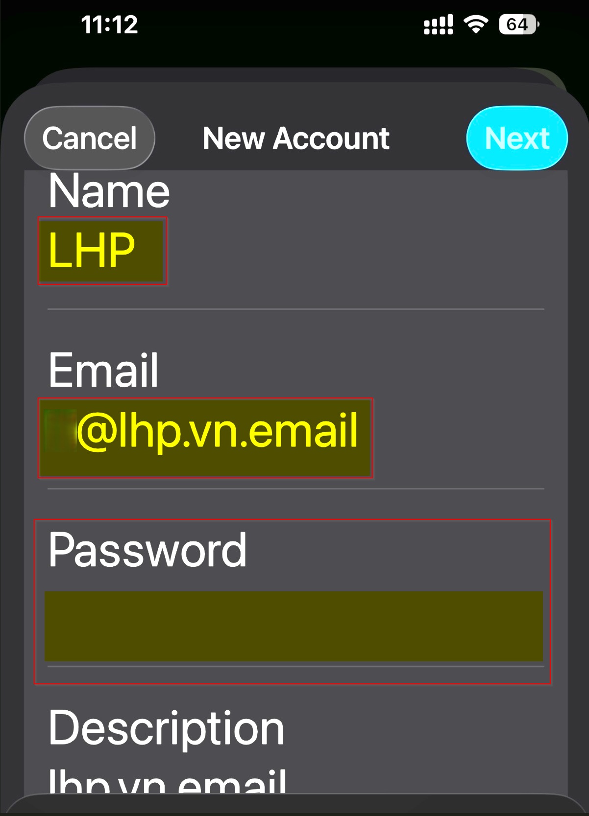 Cách sử dụng tài khoản @lhp.vn.email với app MAIL của Apple trên điện thoại chạy iOS: